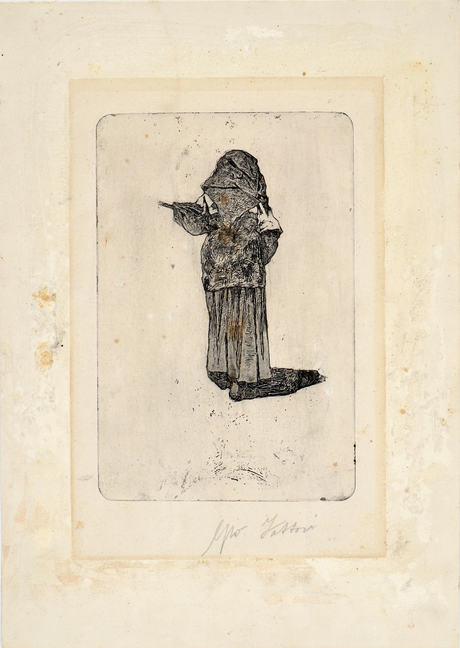 A fine impression printed in black ink on cardboard, with selective inking. Signed Gio Fattori in pencil in the bottom margin. To the platemark 205 x 136 mm, the full sheet measuring 344 x 243 mm. The paper is unevenly toned, due to exposure to light in the frame.