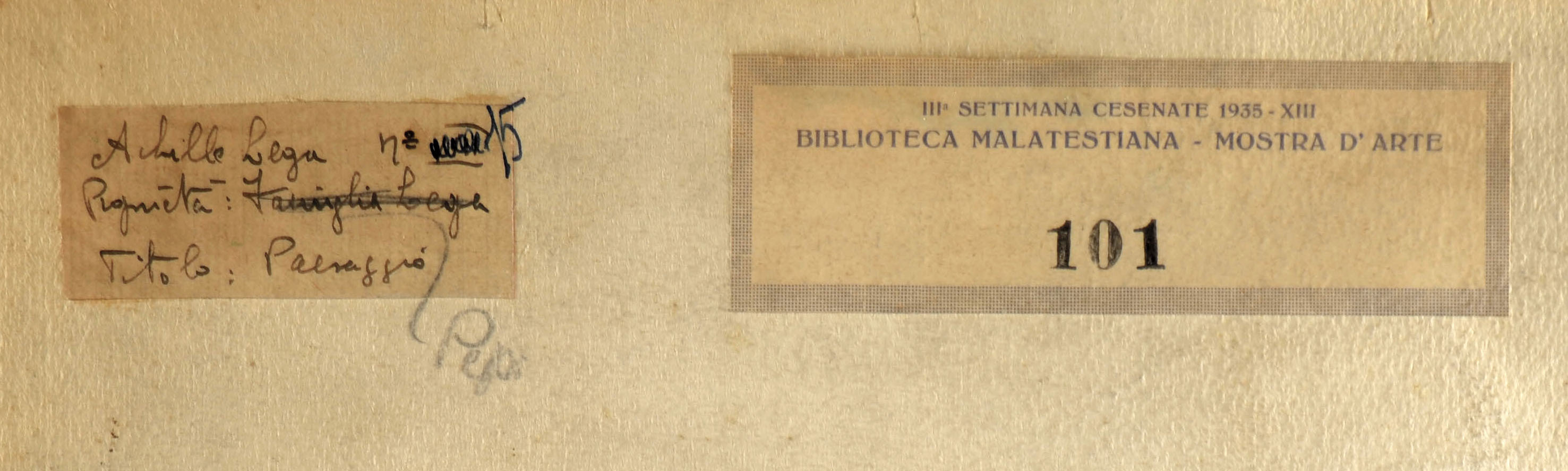 Provenance: Two labels on the back of the frame affirm the original provenance of the drawing from the Lega family and the participation in the art exhibition at the Malatestiana Library in Cesena in 1935.