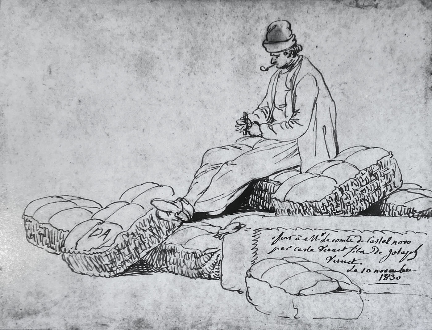 The drawing belonged to an album of Vernet's sketches, of various kinds, some of which were signed and dated 1830.