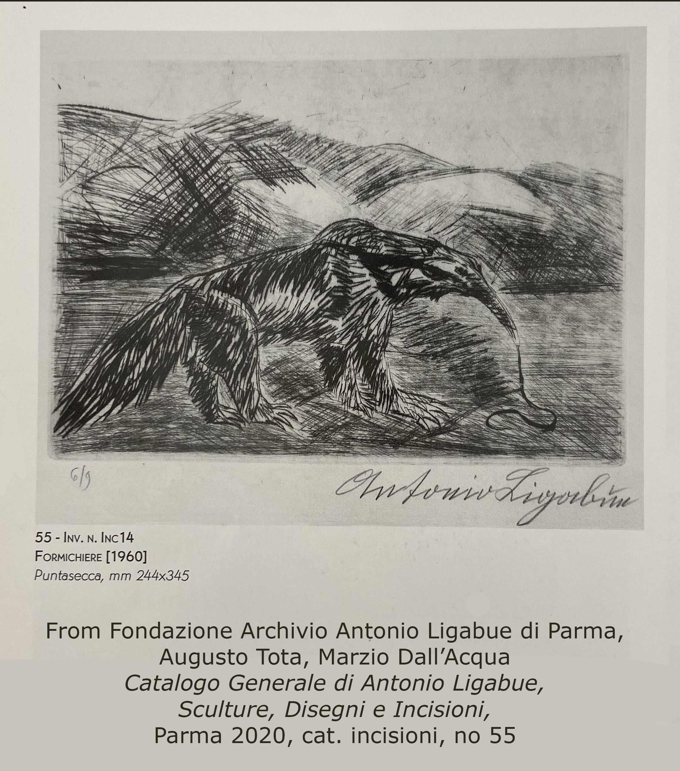 See Fondazione Archivio Antonio Ligabue di Parma, Augusto Tota, Marzio Dall’Acqua, Catalogo Generale di Antonio Ligabue, Sculture, Disegni e Incisioni, Parma 2020, cat. incisioni, no 55.