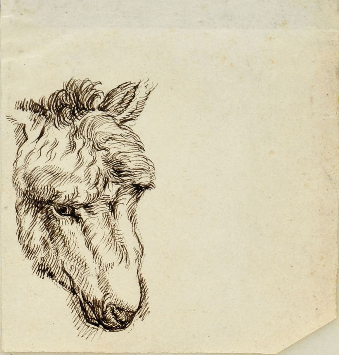 In the drawing room of the Castello Sforzesco in Milan there is another version of this study, executed in sanguine, which is indicated as a study of a two-month-old donkey.