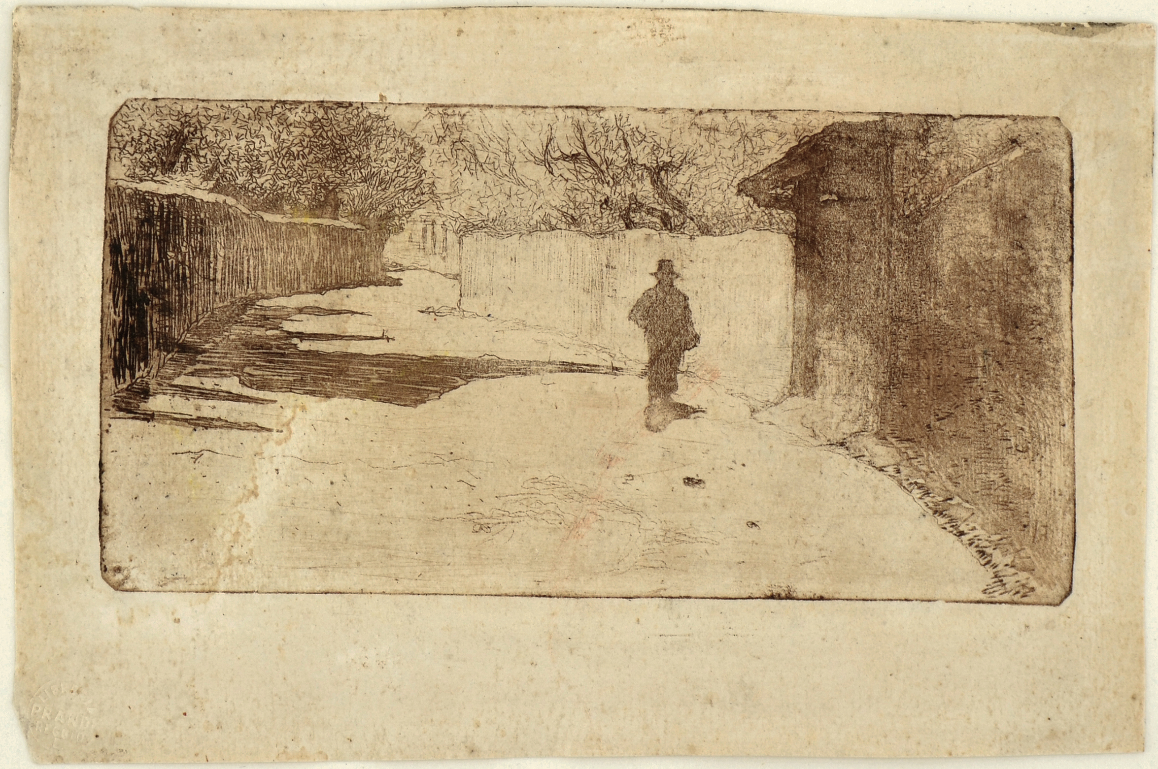 Giovanni Fattori, possibly the most important painter of the nineteenth century in Italy, received his first instruction in drawing from a lesser painter of his native town. In 1846 Fattori moved to Florence to attend the Academy. During the 1850s Fattori joined the innovative artists, called Macchiaioli, who met at the Caffè Michelangelo in Florence and were champions of a new technique and style to contrast the conventional academic language. During those years, he still produced works that could be attributed to the historical-romantic school but his interest in studying from life also extended to landscape painting and the military life of the day became the subject of his first experiments in painting using the macchia technique. In 1867, after the death of his first wife, Fattori frequently stayed in the Maremma region which became the ideal backdrop for his works. Fattori began etching in the early 1880s, when he was nearly sixty; quite soon he was able to appreciate the difference of expression he could achieve using this new medium. A real peintre-graveur, he continued with etching his artistic research on light and essential shapes in reality.